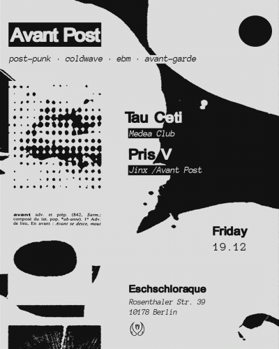 Avant Post returns to Eschschloraque for its final 2025 edition, joining forces with Leipzig’s Medea Club for a night of shadowed electronics and analog tension.