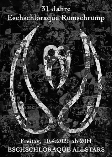 Älter werden ist eben doch ein Grund zum Feiern: Ja, wir haben 2025 ein ganzes Jahr unser 30-jähriges Jubiläum gefeiert und nein, wir geben keine Ruhe! Denn bei über drei Jahrzehnten unabhängiger Kunst und Kultur in Berlin-Mitte, und das gerade in einer von multiplen Krisen geprägten Realität, hat dieser „natürliche Lebensraum“ seine Party verdient: Der Künstlerclub Eschschloraque wird 31! Rümschrümp lautet eine Antwort auf diese Realität, den Status Quo mit einem radikalen Willen zur Kunst hinterfragend.